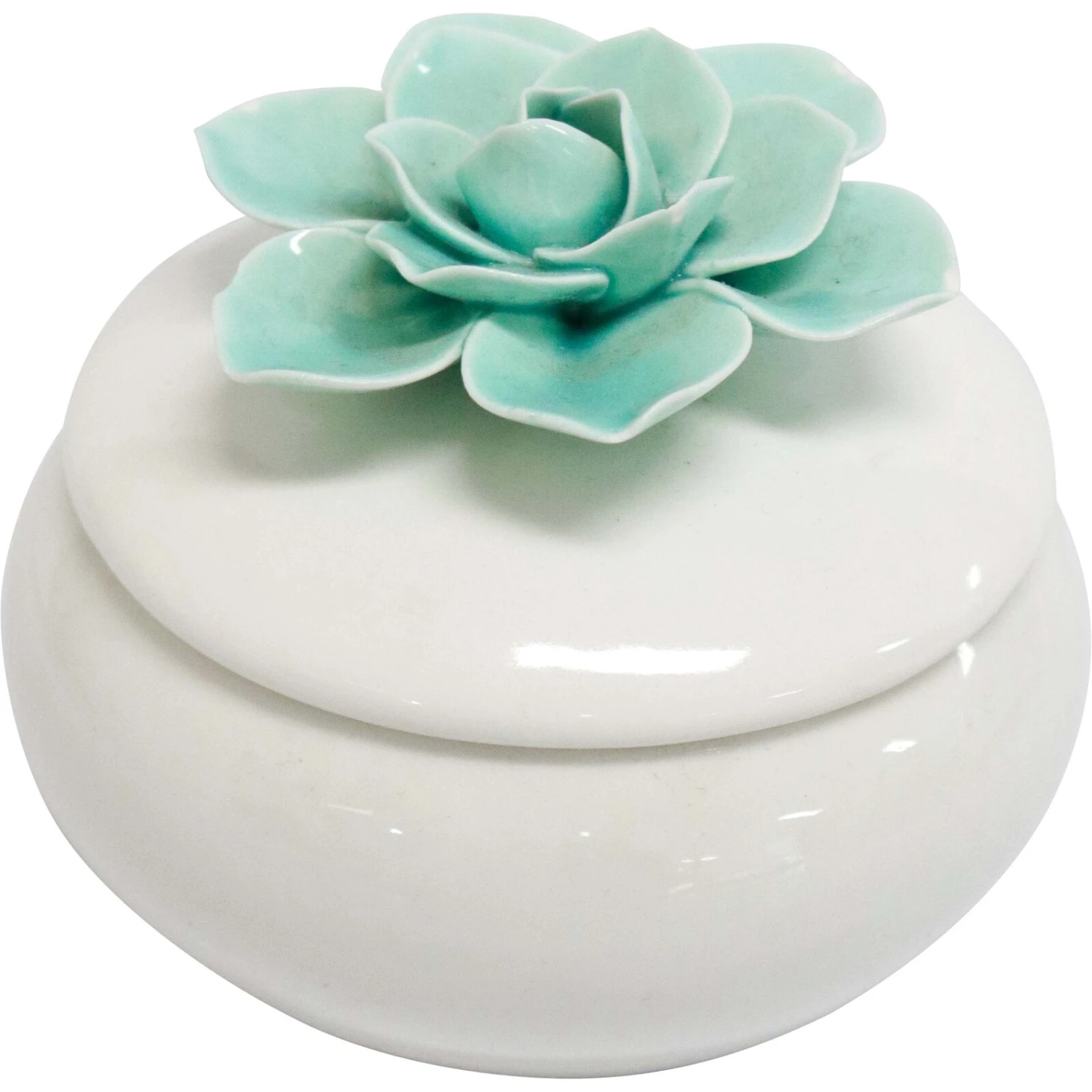 Delight your customers with the charming Trinket Jar Teal Flower, a versatile and aesthetically appealing accessory for any dressing table or shelf. Crafted from high-quality ceramic, this beautifully detailed 8.5×8.5×7.5cm jar features a stunning teal flower on the lid, adding a touch of elegance to any space. Its pristine white finish and delicate design make it an ideal gift item that is sure to boost sales and attract a discerning clientele.