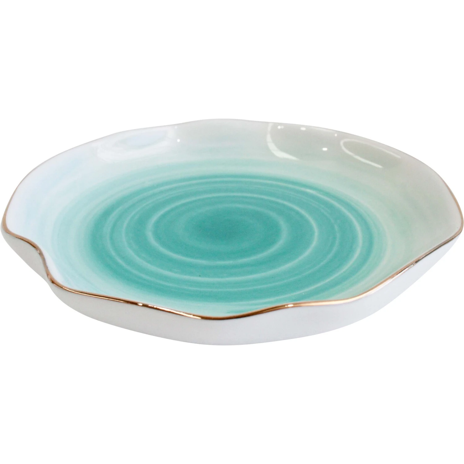 Trinket Plate Artisan Ocean has a cool design that’s full of personality. Featuring a gorgeous, ocean-inspired fade from bright turquoise to a softer shade that creates a bespoke feel. The jagged edge is complemented by a gold rim that gives this glazed ceramic piece a sleek finish.