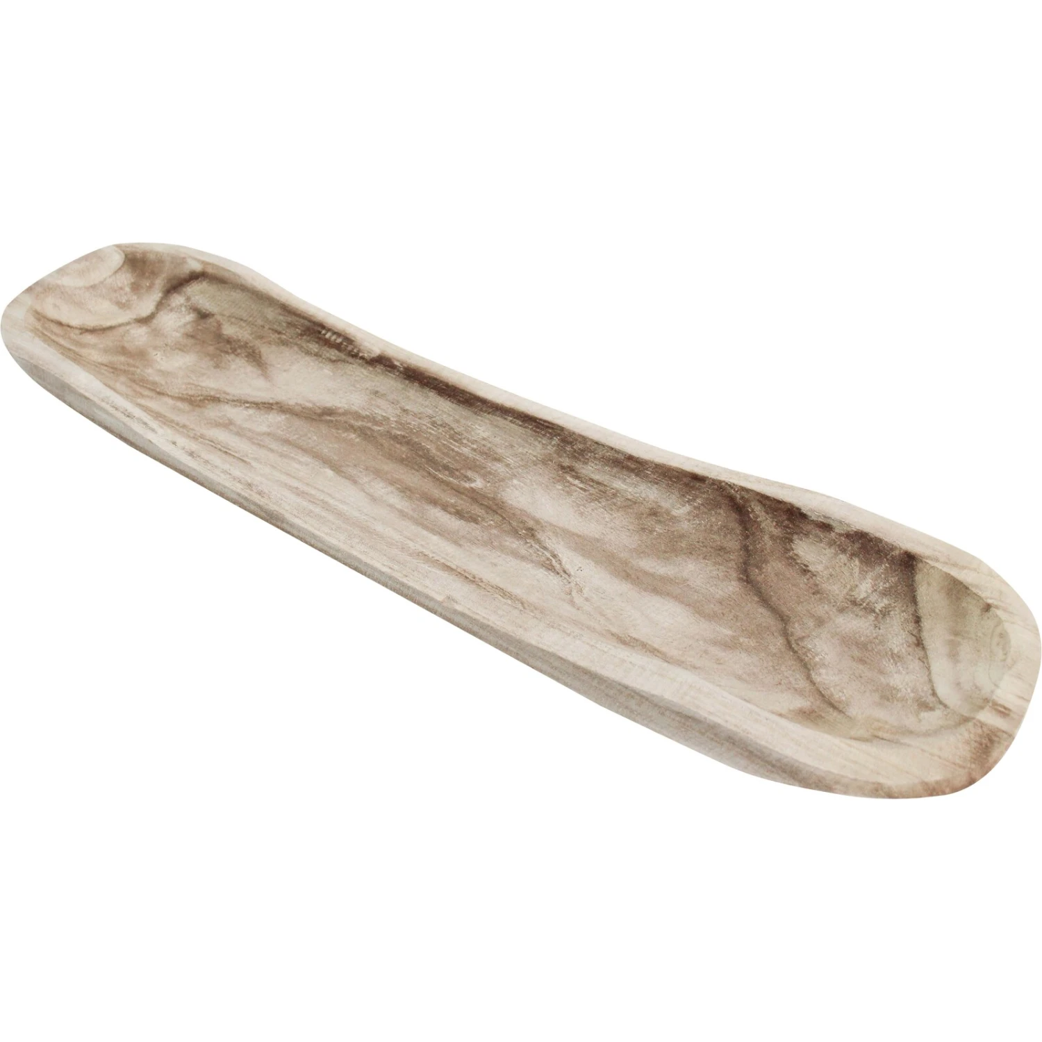 The trough Whisper comes in a light wood colour. The paulownia wood has been hand carved to present a 66 cm long tough like bowl that could have multifarious usages –right from serving bread, to fruit and cheese. It would add that touch of whimsy with a natural tweak that hand hewn wood possesses. The length and shape of the platter allows it to be used as a displayable highlight when the occasion demands and would be great for a center arrangement with candles, flowers and the works.
