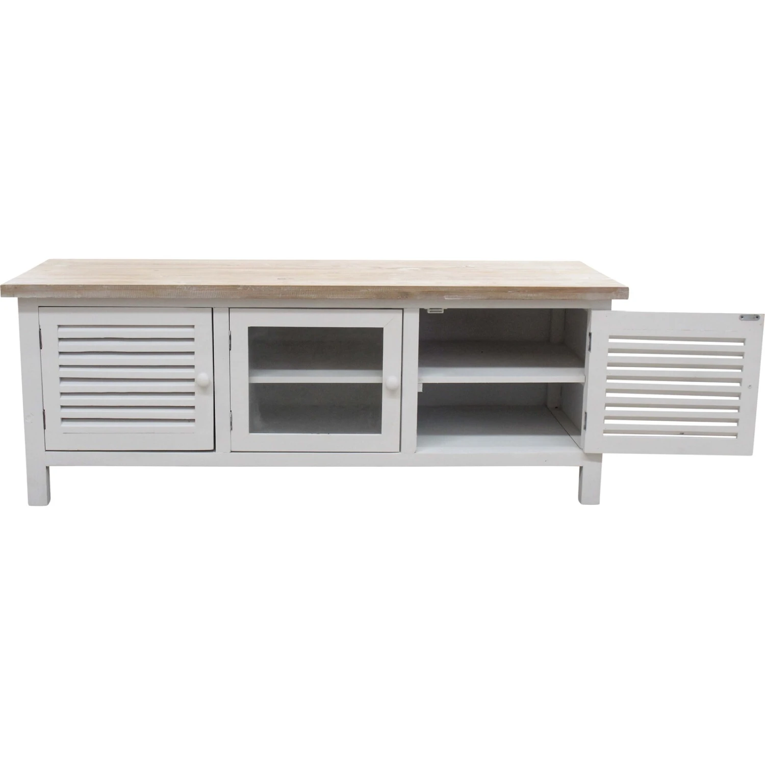 A delightful mix of the fragility of glass with the solid structuring that wood gives to furniture makes this an interesting design to add to your home space. TV cabinets play a functional role in keeping your entertainment area looking its best and in this case, the design details of the shuttered cabinet as well as the glass paneling in the middle section add more beauty to a simple yet functionally perfect design. If you are looking to create an entertainment space that is well-assembled and neat- this cabinet meets that requirement.