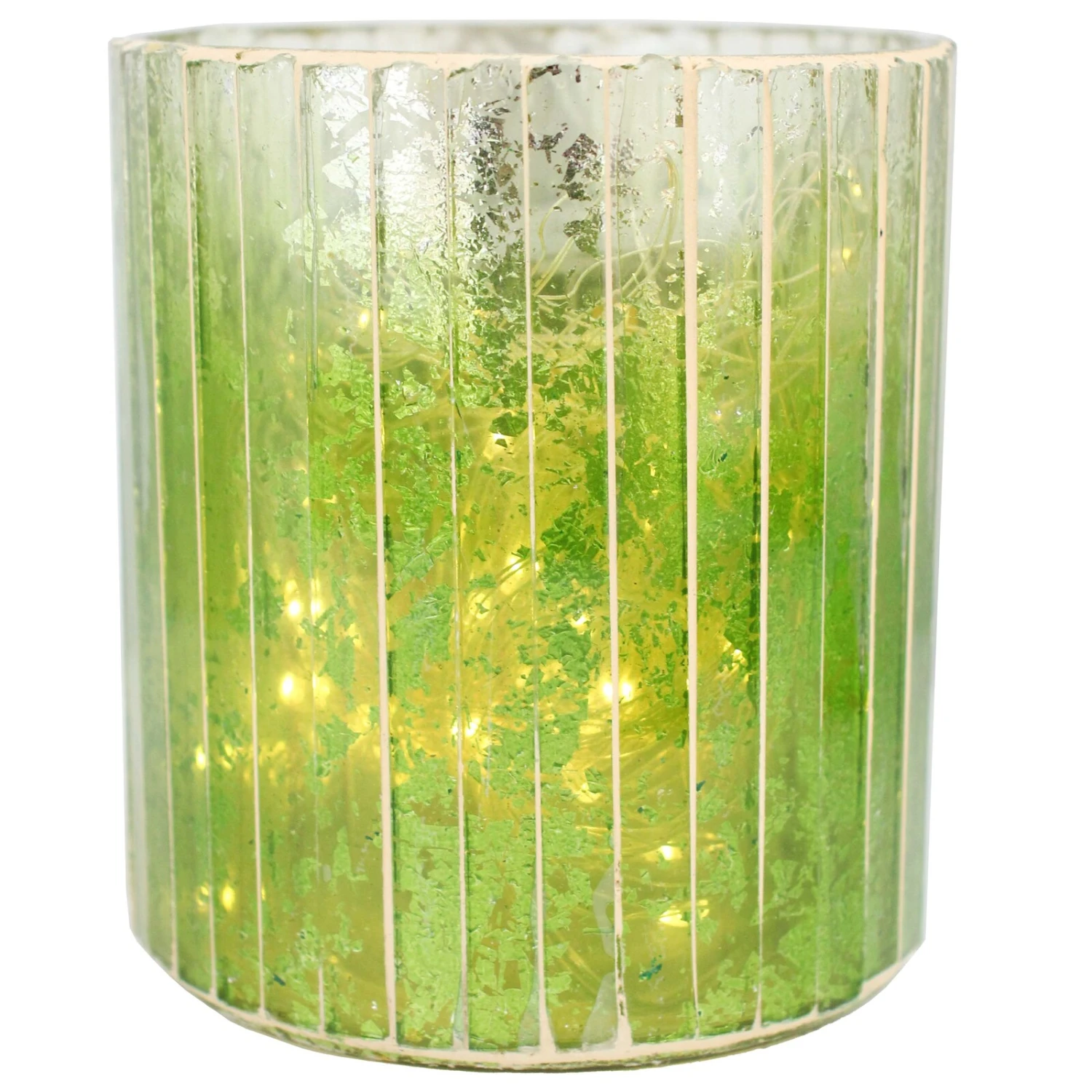 Dipped as if in the colours of summer-the mercury glass look suits the silvery finish that is so stunning when you light a tea light in side. A great way to add colour and vibrancy to smaller spaces that need a little pop of colour and excitement. Made from sturdy glass, this delightful votive can be placed on mantles, corner tables, the console and invite a fresh kind of look with its effect on the lighting and the depth and layers it can create through that.