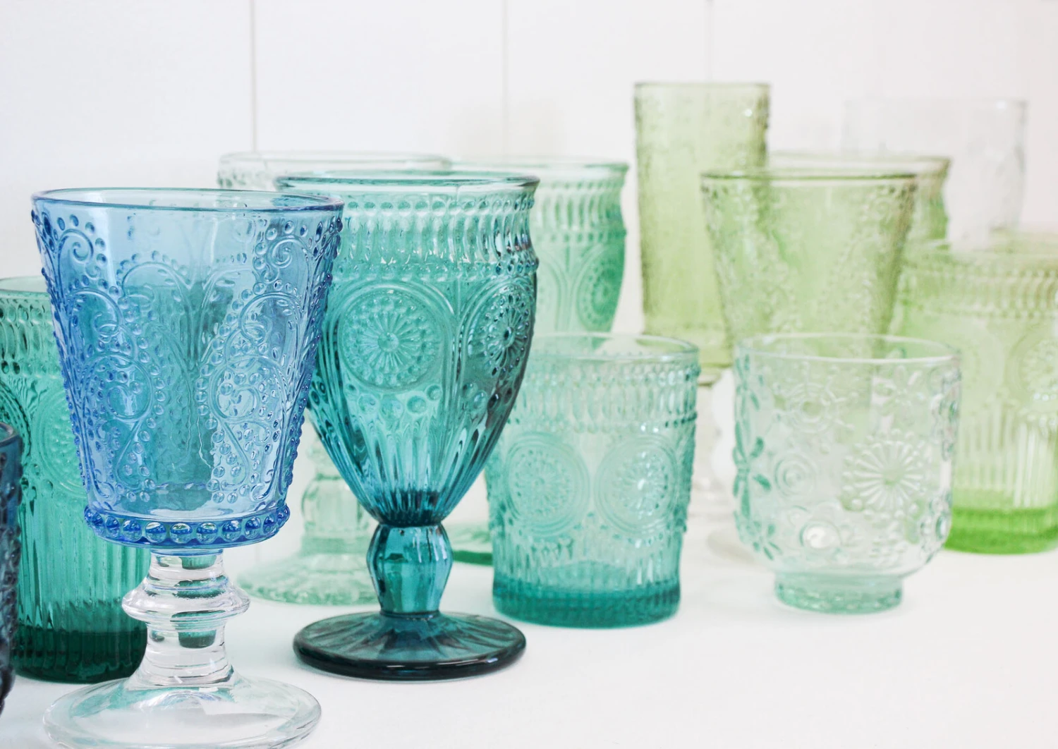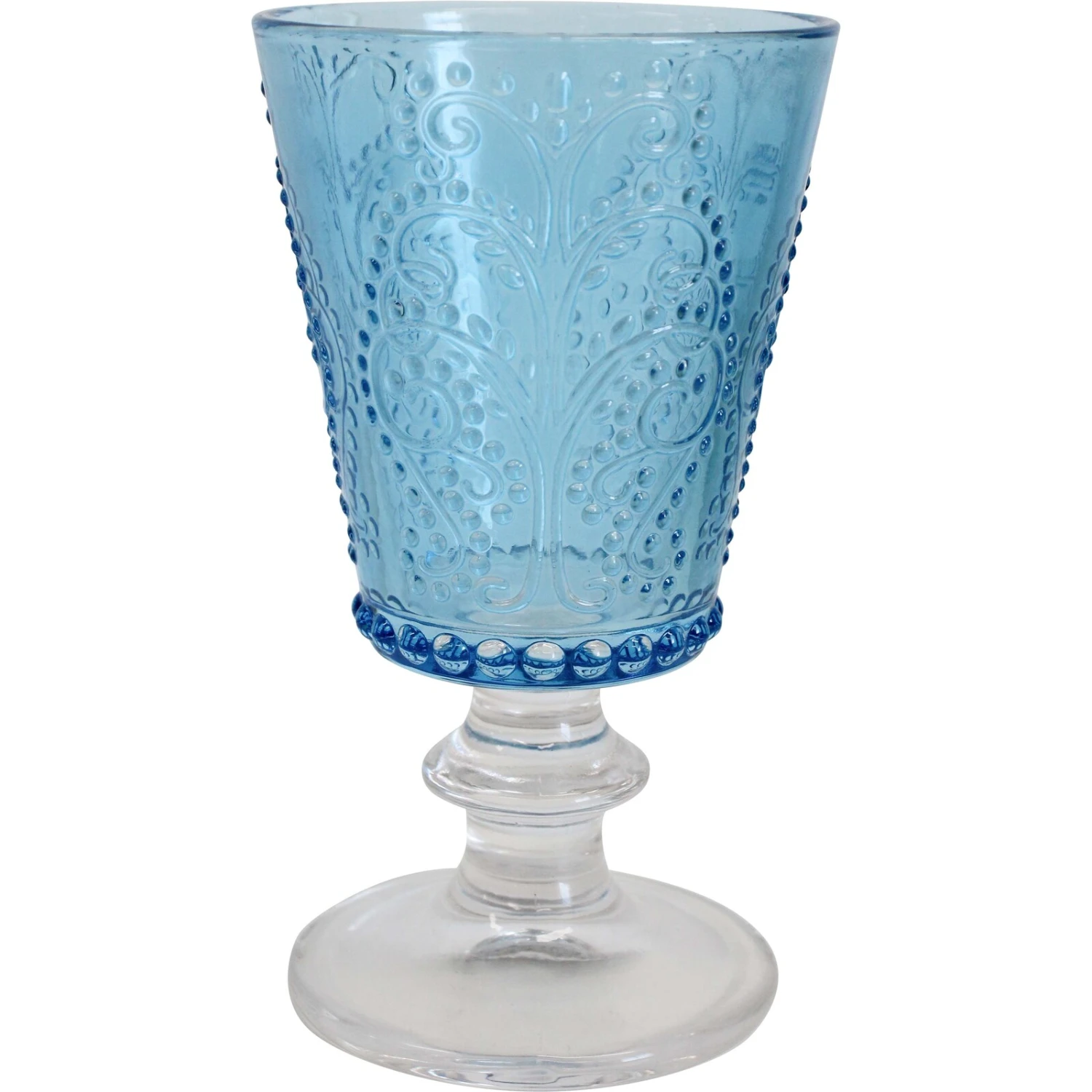 Wine Glass Marine features a stunning blue hue that reflects the beauty of the ocean. This lovely glassware has floral etchings that protrude from its exterior. A chic and stylish choice of a wine glass to enjoy a refreshing dinner.